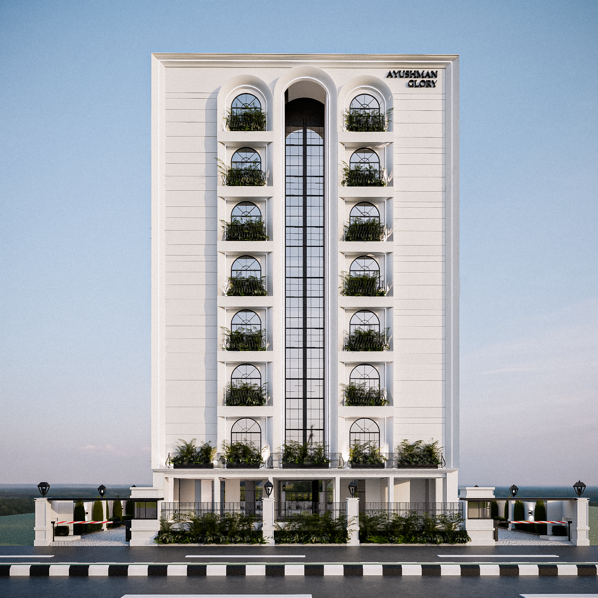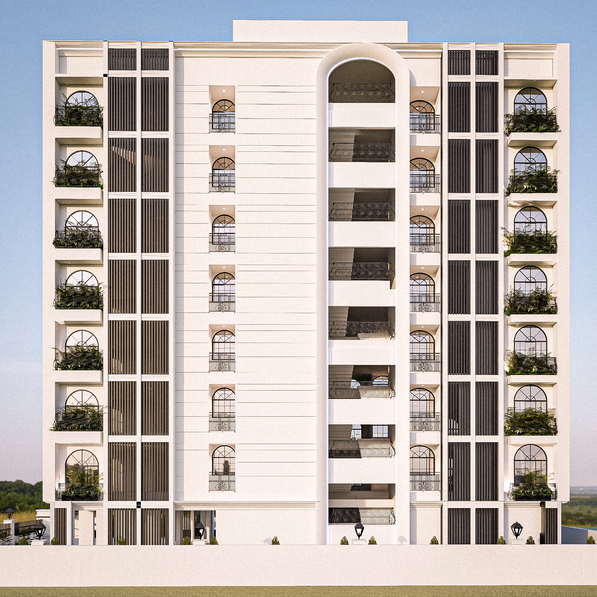 A landmark residential-commercial tower designed to redefine the urban skyline. The structure’s rhythm is defined by a series of classic arched forms, which are elegantly softened by the deliberate integration of lush greenery on every level. This design harmoniously blends timeless architectural grace with modern comforts, offering vibrant leisure spaces and serene homes within a single, cohesive form.