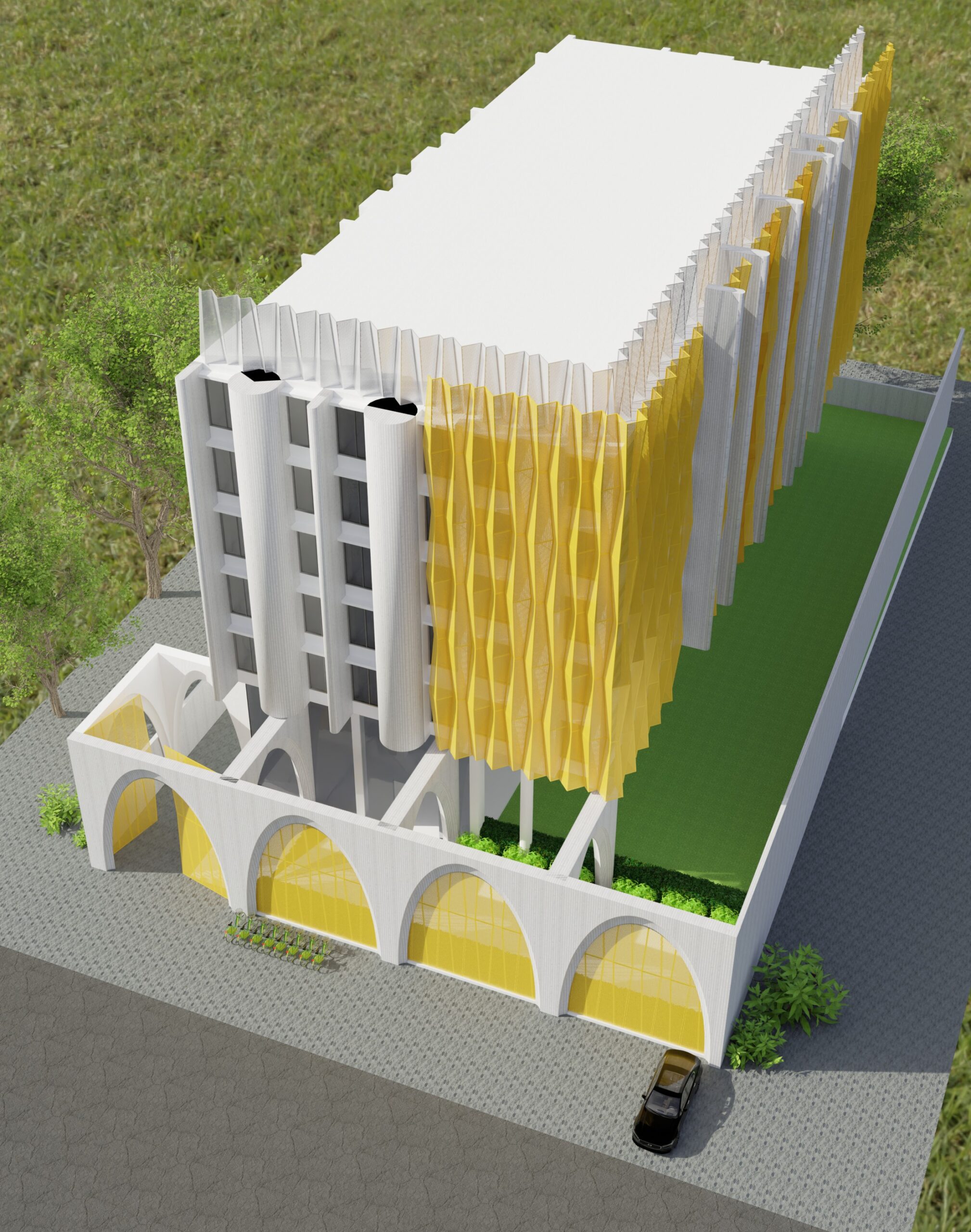This project showcases a balanced approach to school design, blending aesthetics with functionality. The architecture emphasizes natural light, clear circulation, and well-defined learning zones to enhance the daily experience of students and educators. Designed to be safe, sustainable, and adaptable, the campus supports holistic education while maintaining a timeless architectural character.