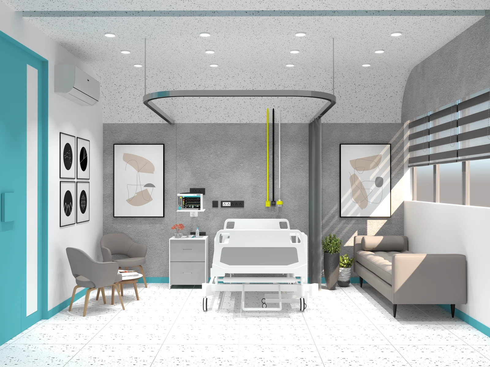 The design prioritizes the patient experience throughout the facility. Spacious and well-ventilated waiting areas, comfortable patient rooms with amenities like natural light and views, and private consultation rooms ensure a comfortable and dignified experience for all.
