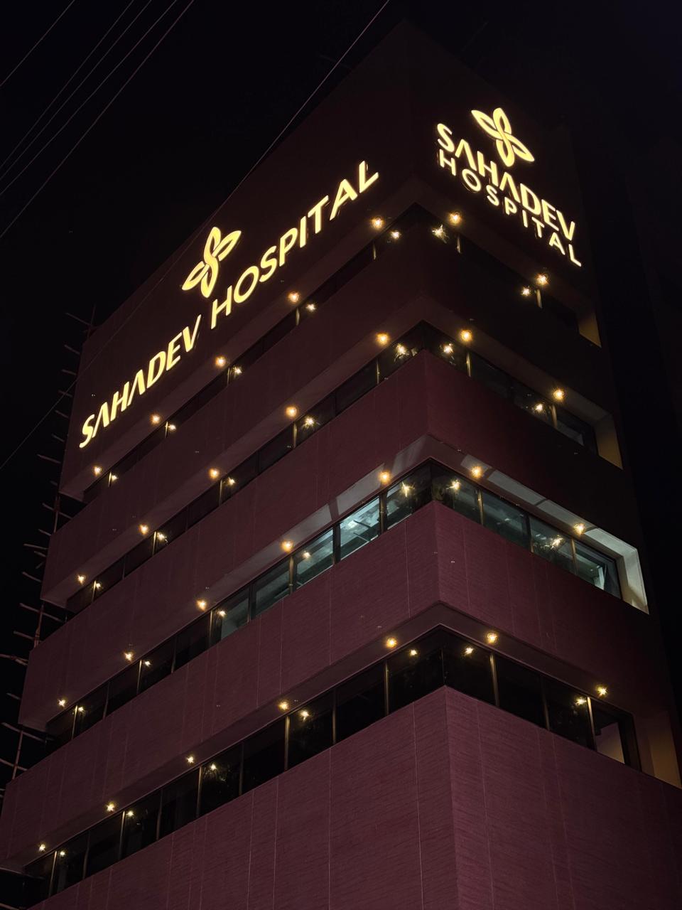 Sahdev Hospital’s reception area is a masterclass in minimalist design aimed at reducing patient anxiety. The space is dominated by a crisp, white palette, accented by subtle touches of blue in the cushions. The reception desk is a sculptural, curved form that breaks the rigidity of a typical counter, creating a softer, more inviting point of contact. The hospital’s logo is beautifully integrated into a backlit wall feature, acting as a serene focal point that reinforces branding without visual clutter. The polished, seamless flooring and clean lines throughout the space, including the concealed lighting and flush doors, speak of hygiene and precision, which are paramount in a healthcare setting.