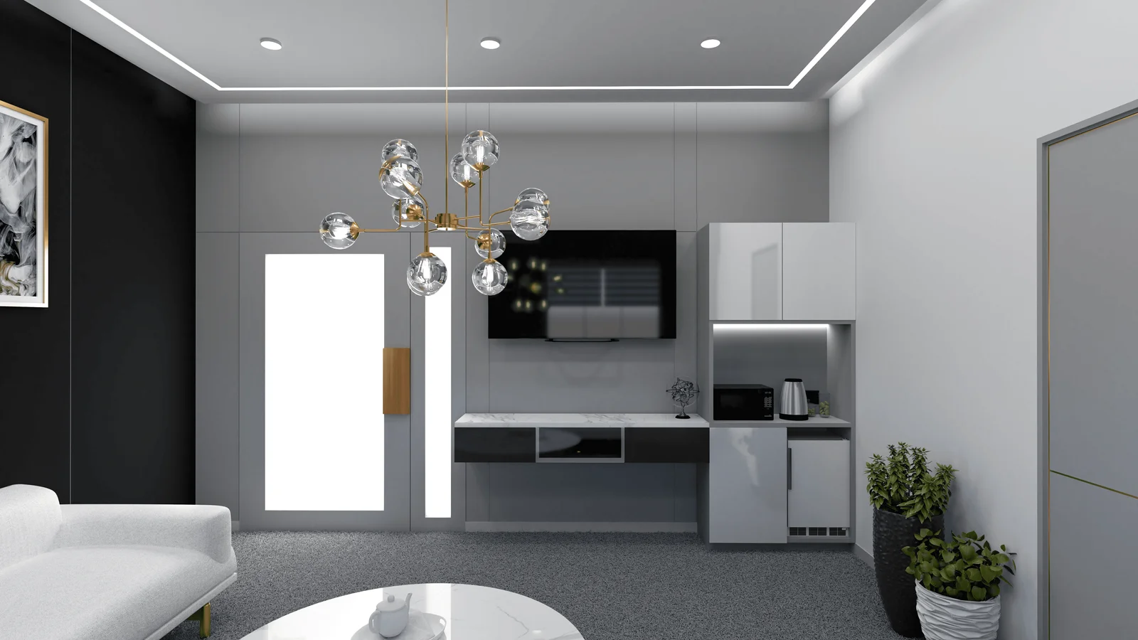 The use of decorative elements, such as artwork and plants, adds a touch of personality and creates a more engaging environment.
