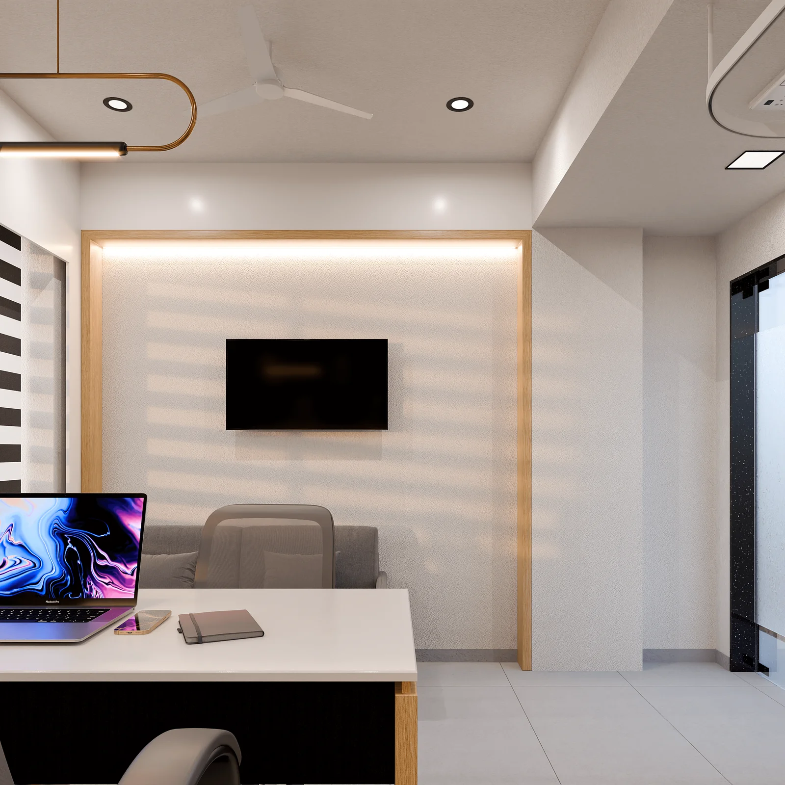We adopted a modern-minimalist theme rooted in warmth and precision. Natural materials like wood veneers, soft textures, and matte finishes were harmonized with contemporary lighting elements to create an atmosphere that feels both professional and personal.